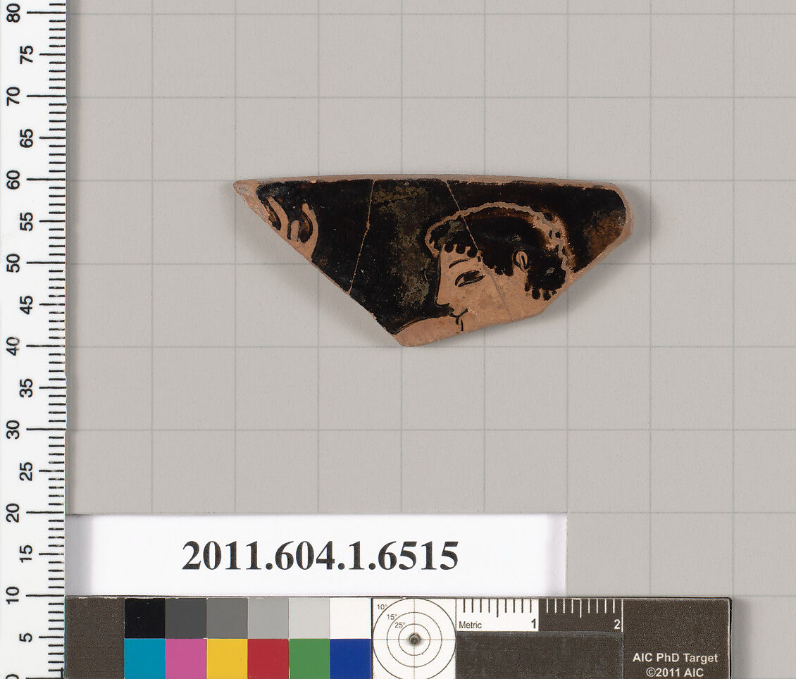 - Title:Terracotta rim fragment of a kylix (drinking cup)