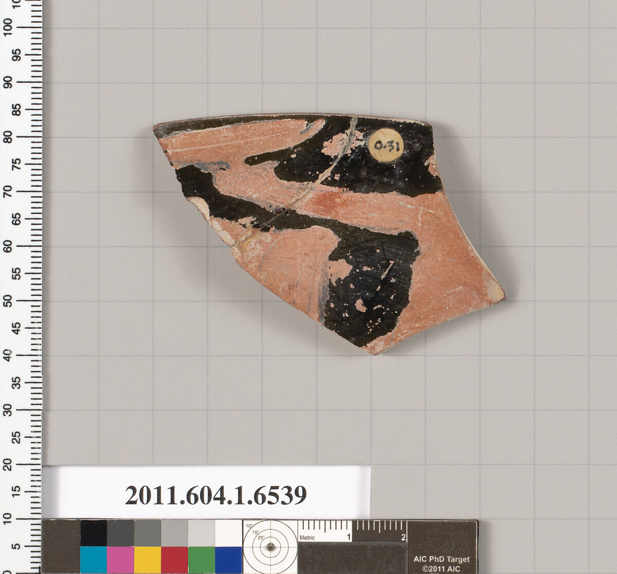 - Title: Terracotta rim fragment of a kylix (drinking cup)