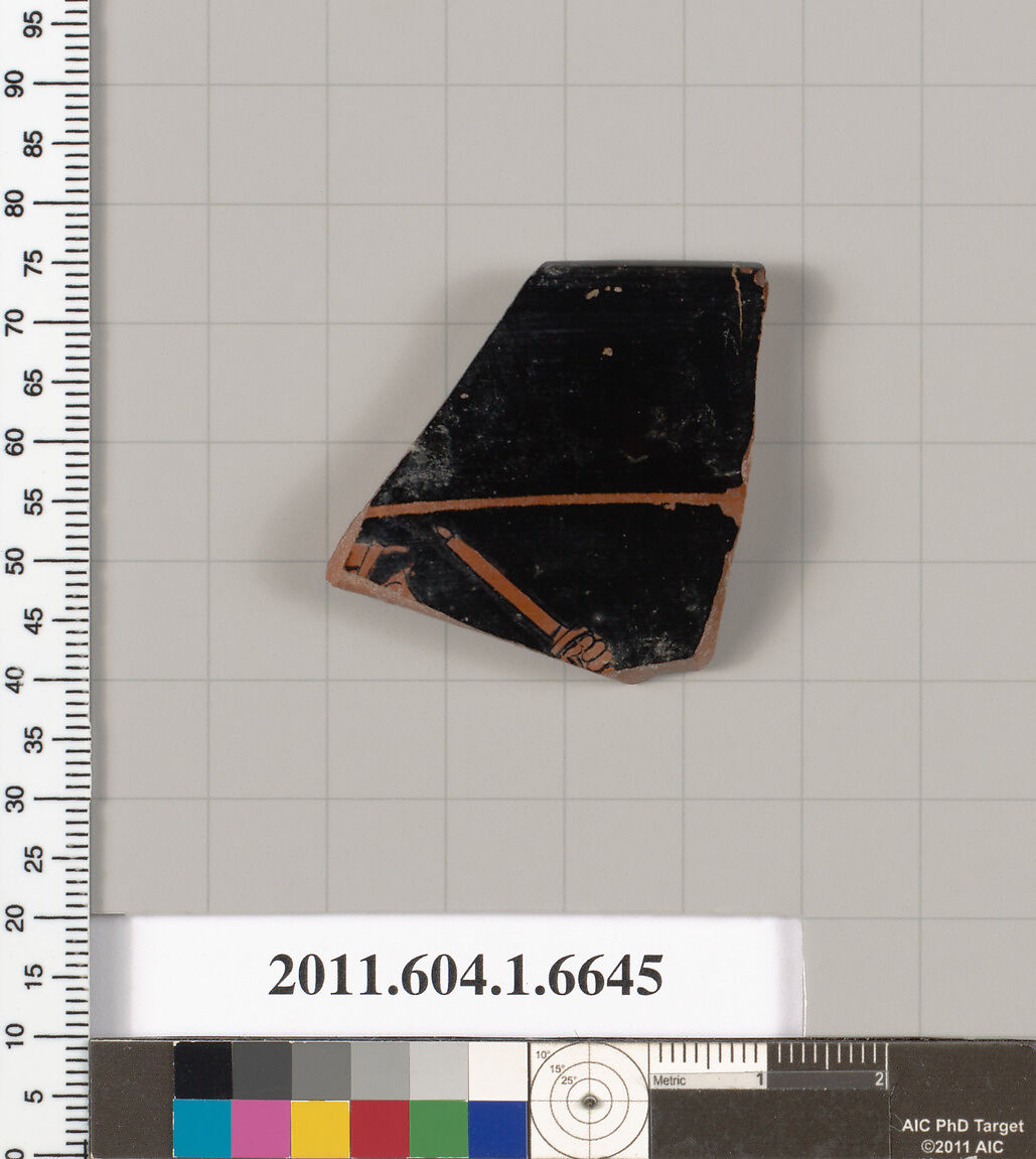 - Title: Terracotta rim fragment of a kylix (drinking cup)