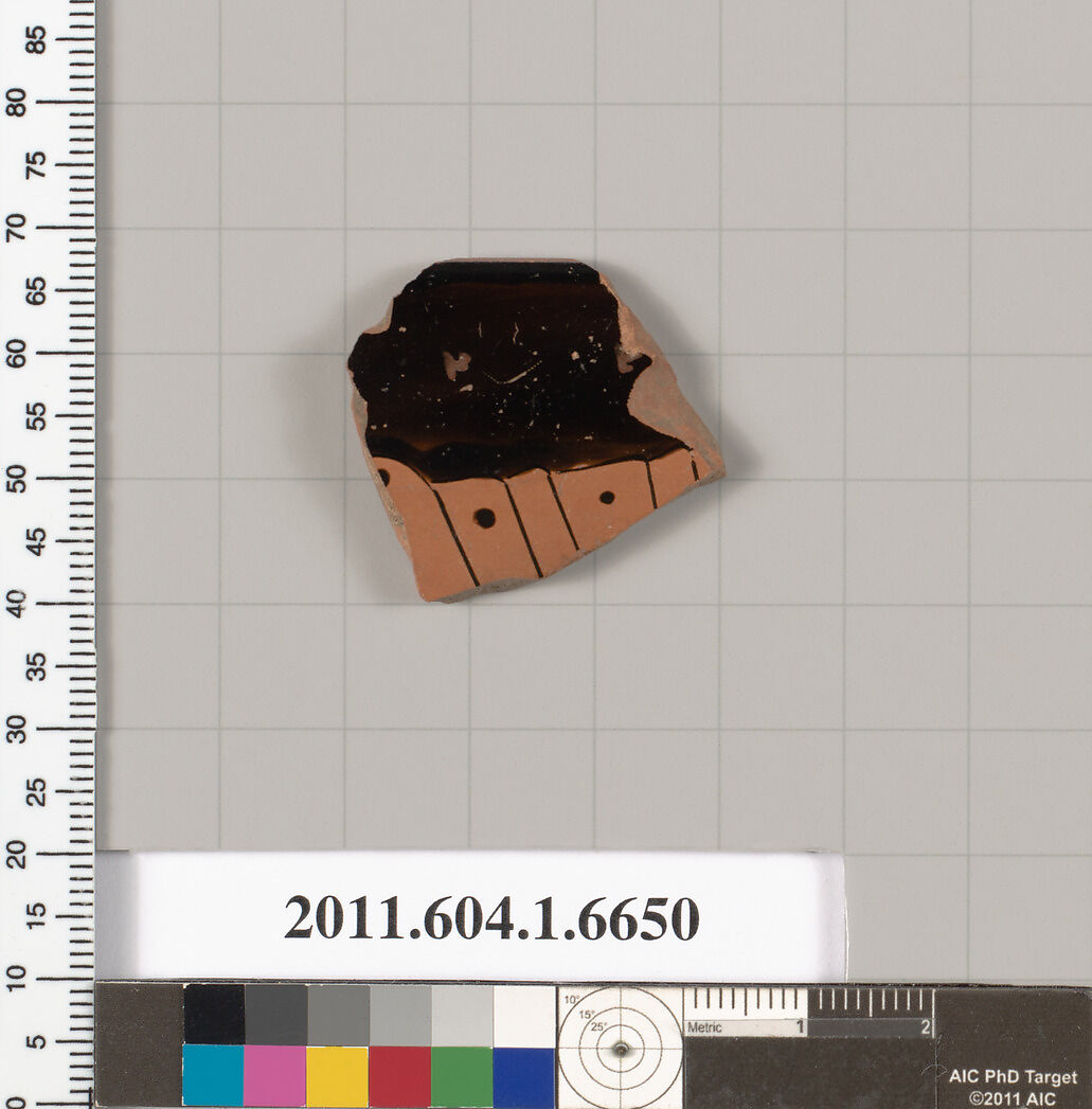 - Title:Terracotta rim fragment of a kylix (drinking cup)