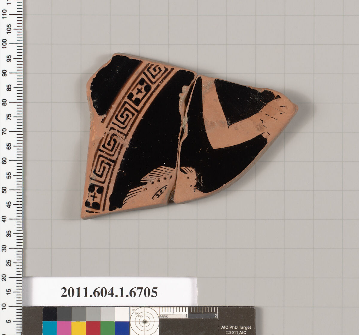 - Title:Terracotta fragment of a kylix (drinking cup)