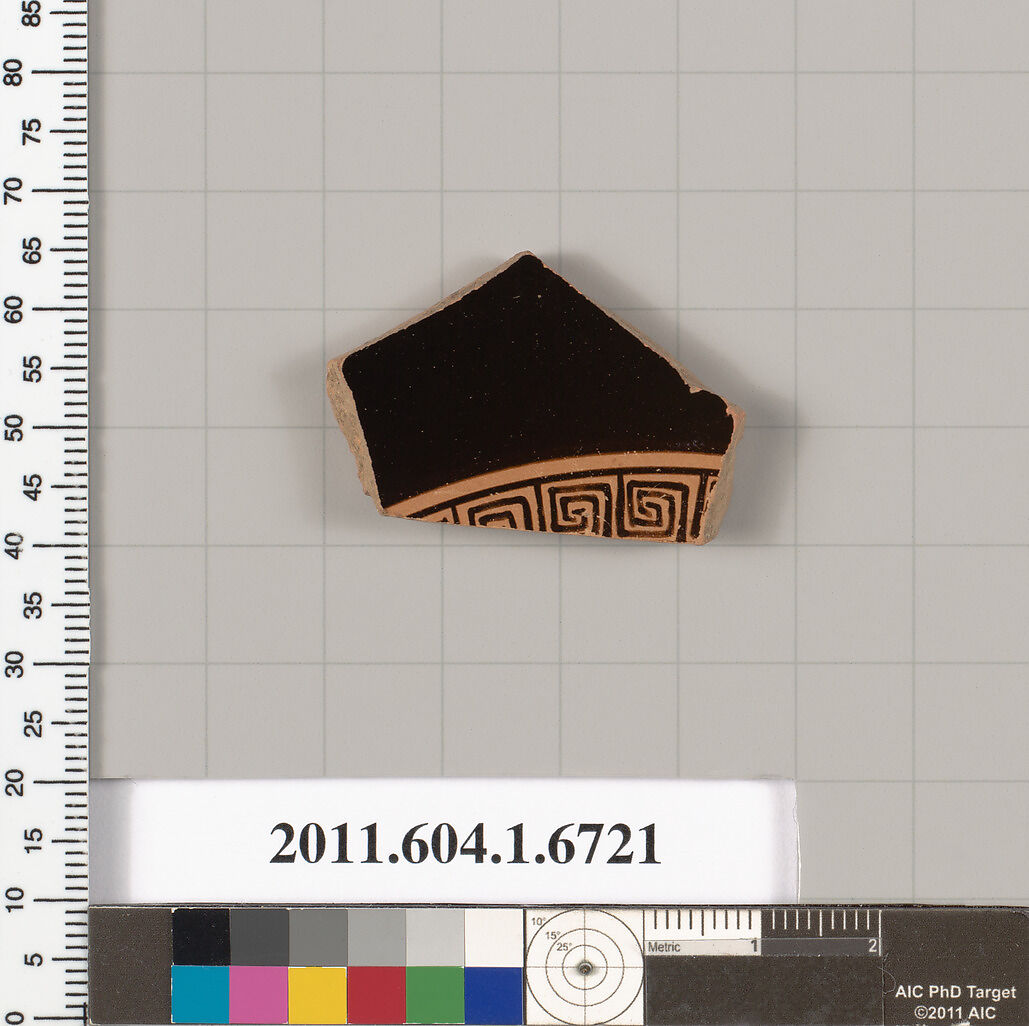- Title:Terracotta fragment of a kylix (drinking cup)