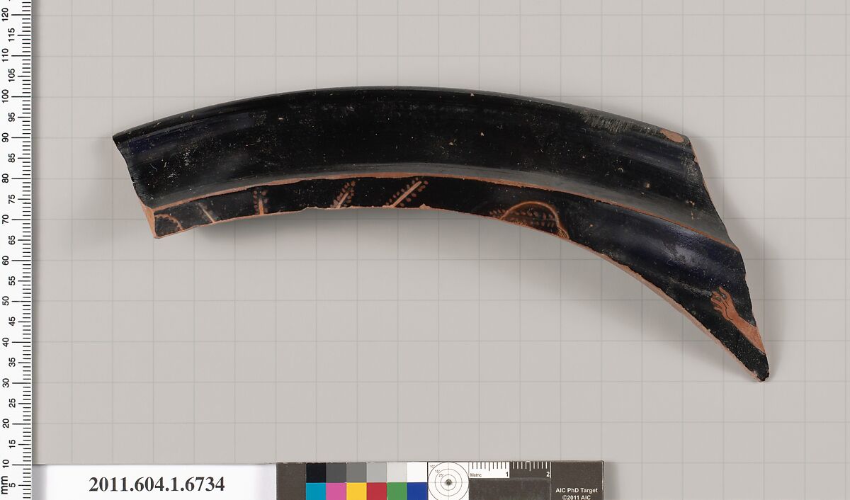 - Title:Terracotta rim fragment of a kylix (drinking cup)