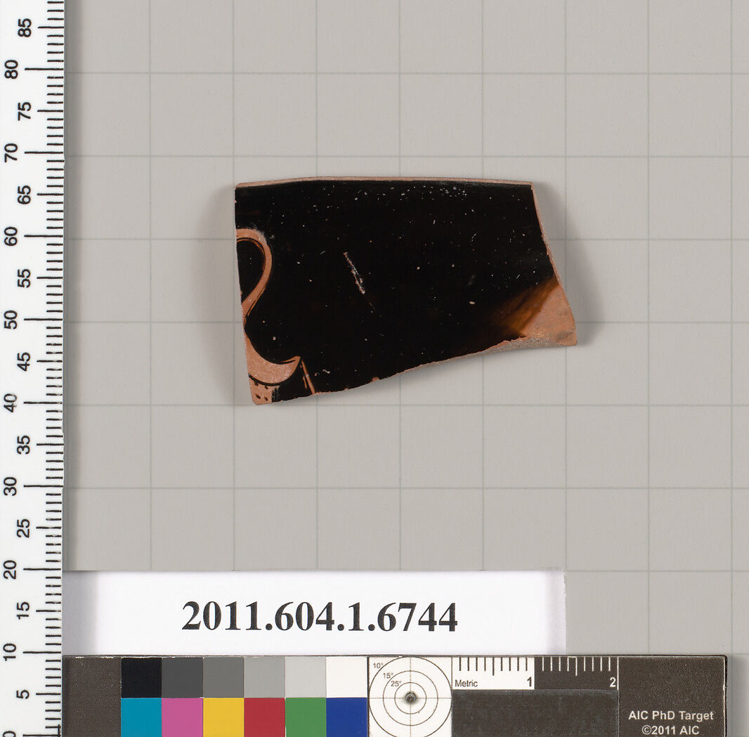 - Title: Terracotta rim fragment of a kylix (drinking cup)