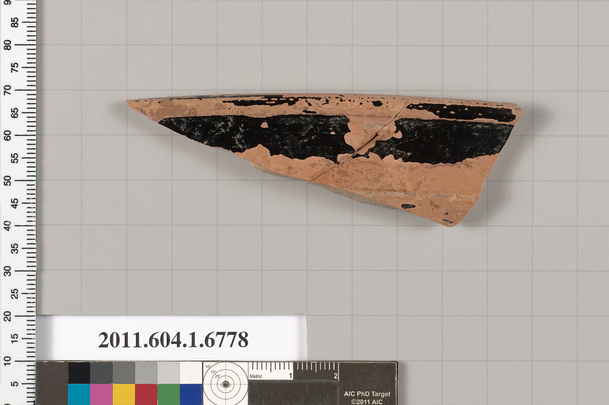 - Title:Terracotta fragment of a kylix (drinking cup)
