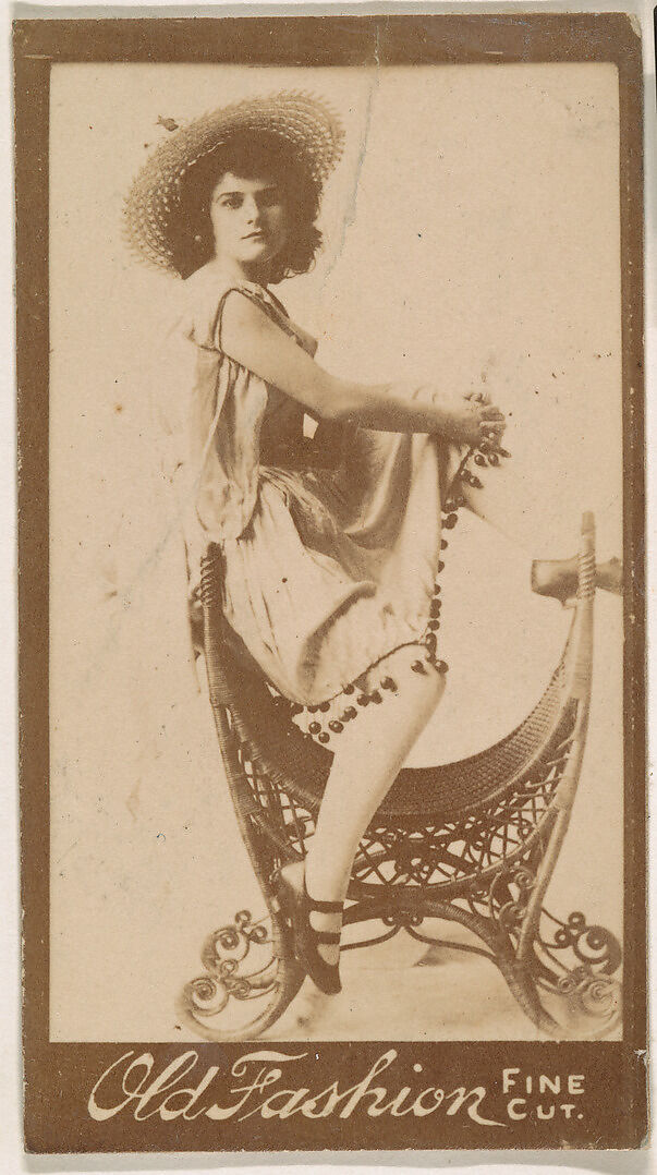 - Title: Actress perched on elaborate chair, from the Actresses series (N664) promoting Old Fashion Fine Cut Tobacco