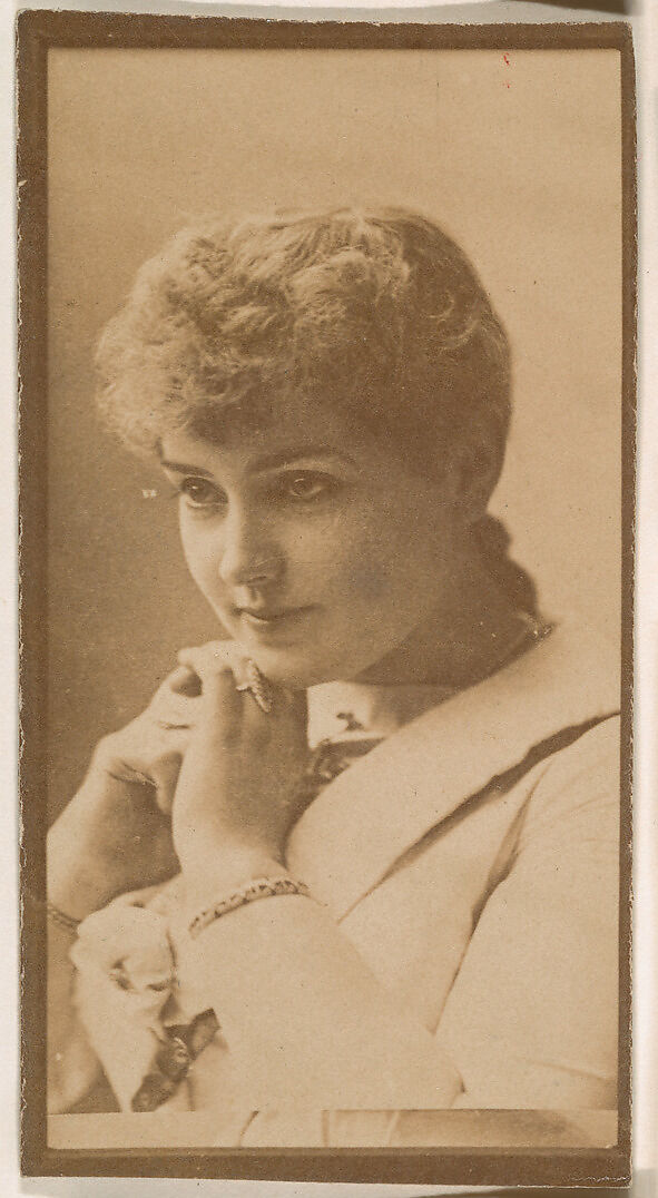 - Title: Actress resting chin on hands from the Actresses series (N664) promoting Old Fashion Fine Cut Tobacco