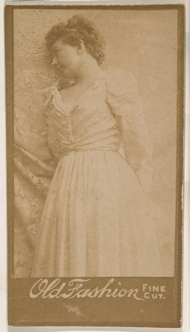 - Title:Actress leaning against studio curtain, from the Actresses series (N664) promoting Old Fashion Fine Cut Tobacco