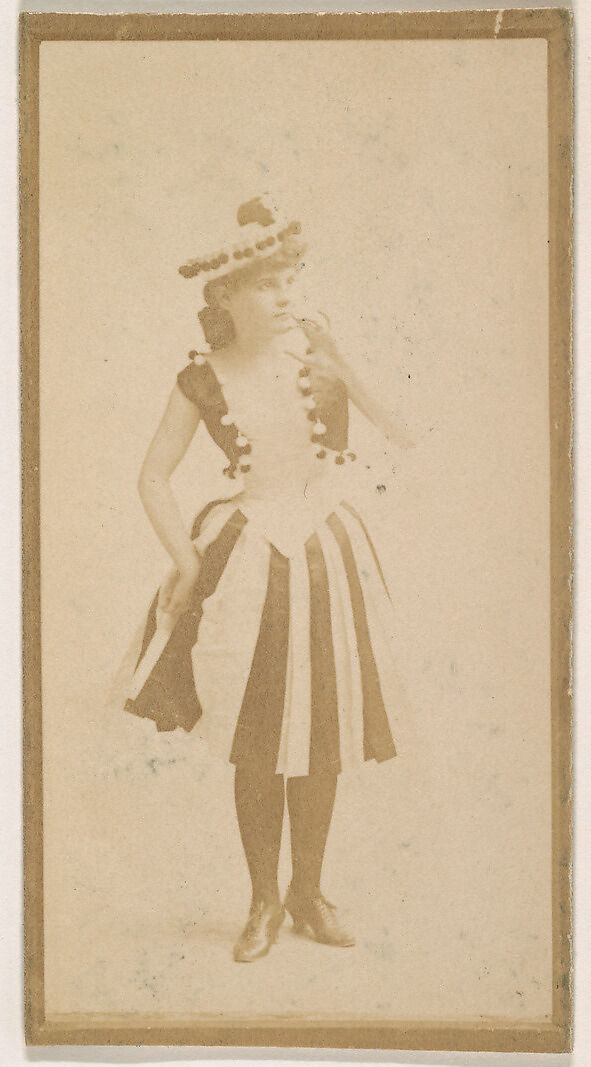 - Title:Actress wearing striped skirt, from the Actresses series (N664) promoting Old Fashion Fine Cut Tobacco