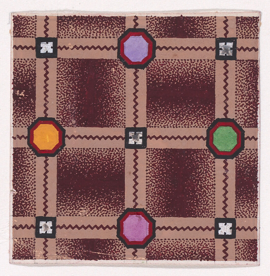 - Title: Textile Design with a Checked Pattern Decorated with Octagons and Squares over a Stippled Background