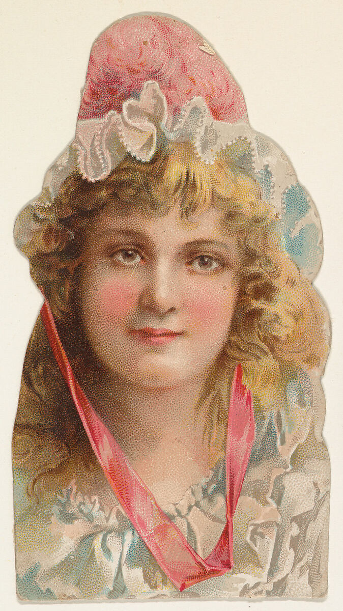 - Title: Actress wearing hat with pink feathers and ribbon, from Stars of the Stage, Fourth Series (N132) issued by Duke Sons & Co. to promote Honest Long Cut Tobacco