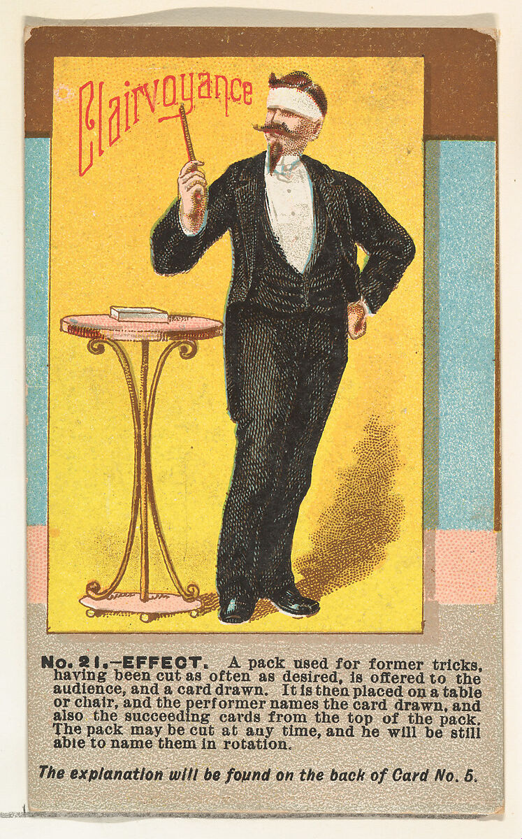- Title: Number 21, Clairvoyance, from the Tricks with Cards series (N138) issued by W. Duke, Sons & Co. to promote Honest Long Cut Tobacco