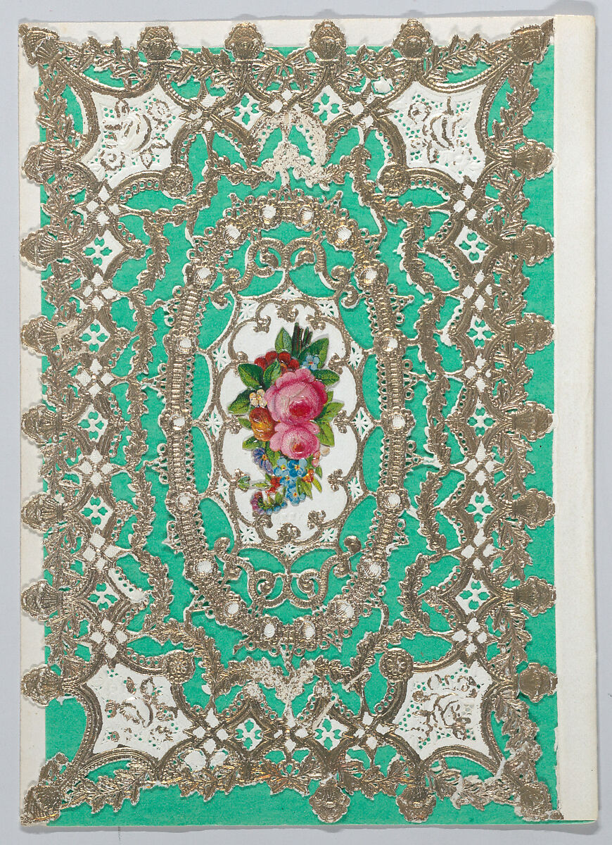 - Medium:Collage, colored papers, lace paper, chromolithographed die-cut scrap