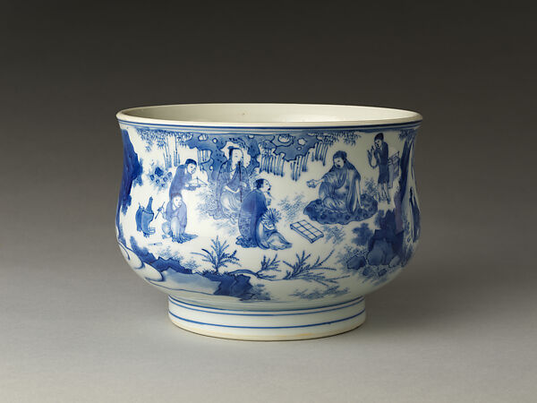 This work of art is currently on loan to the museum.The Seven Sages of the Bamboo Grove were a group of men who retreated from society during the turbulent third century to pursue music, engage in pure conversation, and drink wine in the rustic wilds beyond the reach of daily affairs. This vessel, made to hold burning incense, depicts the Sages ensconced amid stalks of bamboo, distanced from the cares of the world.
