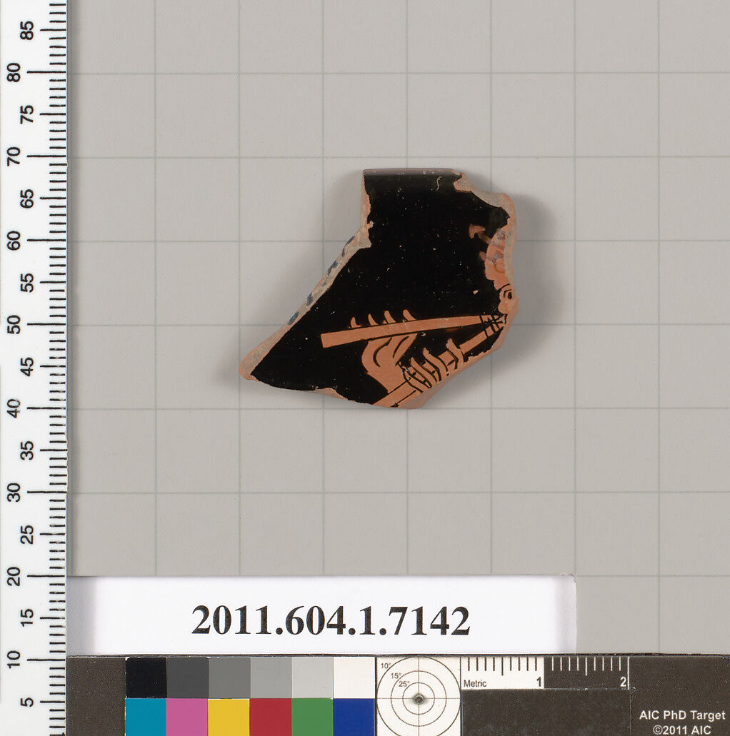 - Title: Terracotta rim fragment of a kylix (drinking cup)
