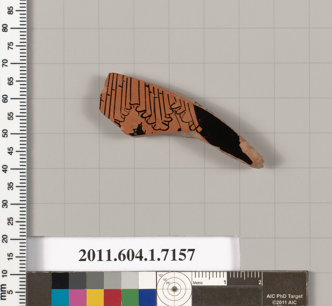 - Title:Terracotta fragment of a kylix (drinking cup)