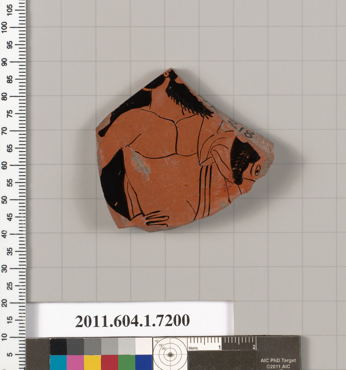 - Title:Terracotta fragment of a kylix (drinking cup)