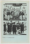 - Title: Plate 14: 8 January 1907, the day after the textile workers' strike in Rio Blanco, in the upper section the slaughtered workers carried off in a cart, in the lower section President Porfirio Díaz being toasted by his supporters, a worker beneath them cradling her colleague, from "Estampas de la Revolución Mexicana" (Prints of the Mexican Revolution)