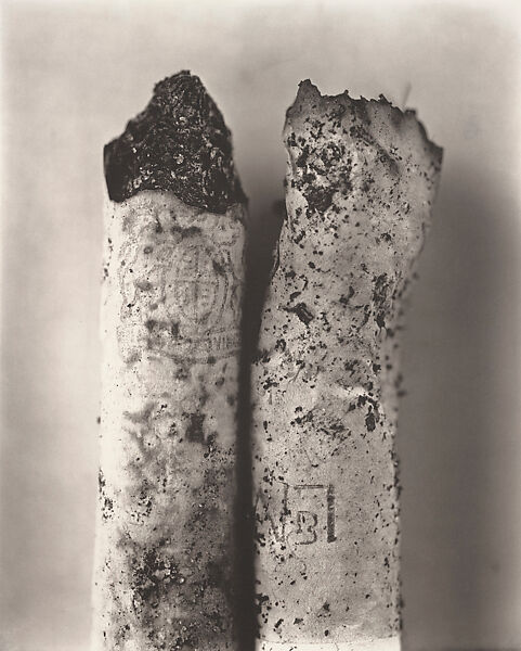When Irving Penn (known for his stunning photographs for Vogue of exquisite models in couture garments) first exhibited his photographs of cigarette butts at the Marlborough Gallery in New York City in 1977, the Cigarettes were met with incomprehension. Why make achingly beautiful prints of something beneath regard? Two decades earlier, in the 1950s when smoking was socially acceptable, Penn had made portraits of people smoking and ads for cigarettes. But privately he abhorred smoking and sympathized with the American Cancer Society’s war against Big Tobacco. The attitude toward smoking was but one of the beliefs in major upheaval during the 1960s and early 1970s. The brutality of the race riots and of the war in Vietnam revealed a national moral emergency, also evident locally in a New York City wracked with crime, strewn with debris, and on the brink of bankruptcy.