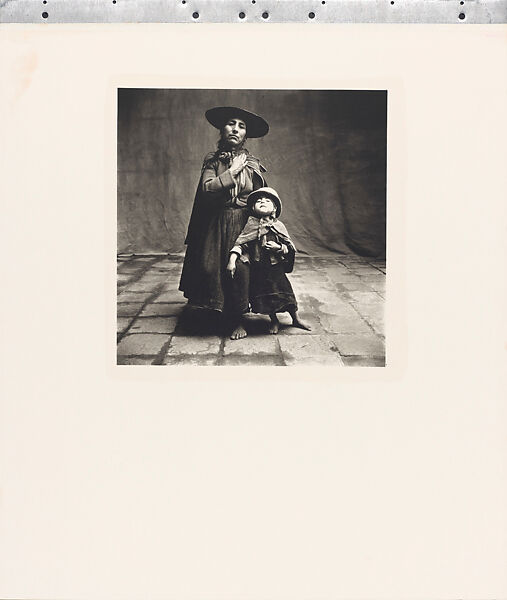 Young mothers arrived at Penn’s rented studio with their newborns strapped in little hammocks on their backs; shepherds and porters came dressed in colorful, striped ponchos and woolen capes; and street vendors from near and far showed up with their wares, including straw hats, newspapers, and fresh eggs from the valleys far below the city. Penn posed these sitters with his distilled awareness of the poetics of available light and his sense of how to delicately tilt a head in order to strengthen a chin, shadow an ear, or animate the eyes.