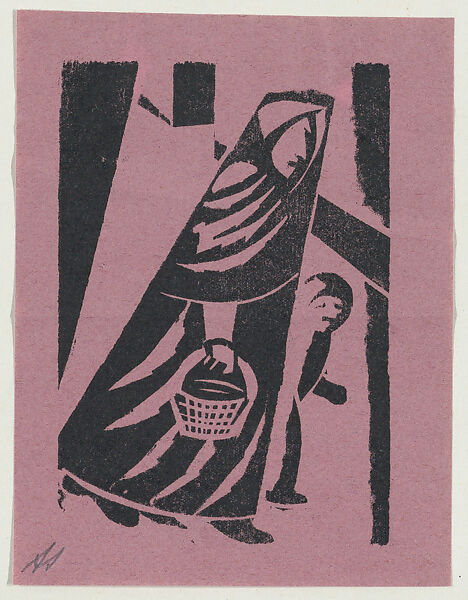- Medium: Woodcut on purple paper
