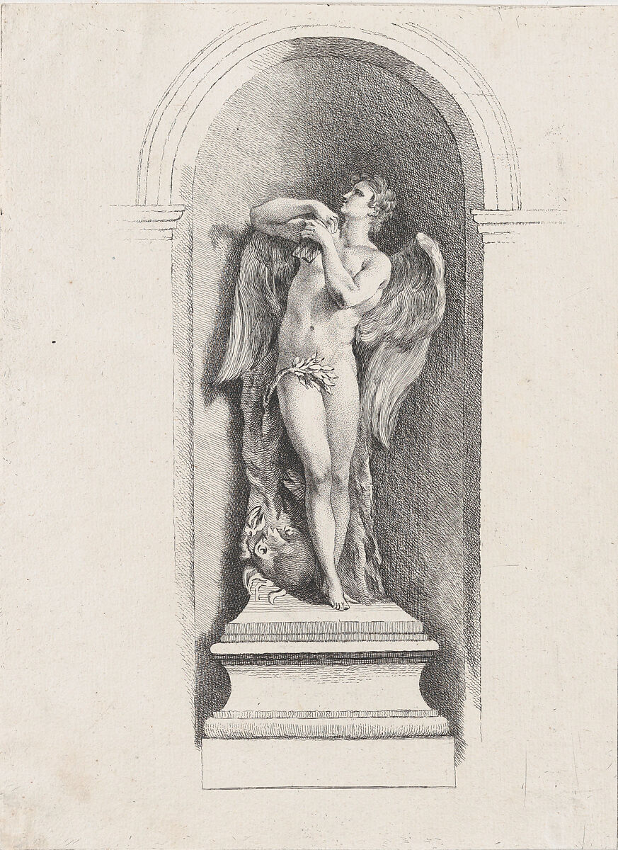 - Title: Standing male angel looking up and holding a flute; after Fontaine des Quatre-Saisons (Paris)