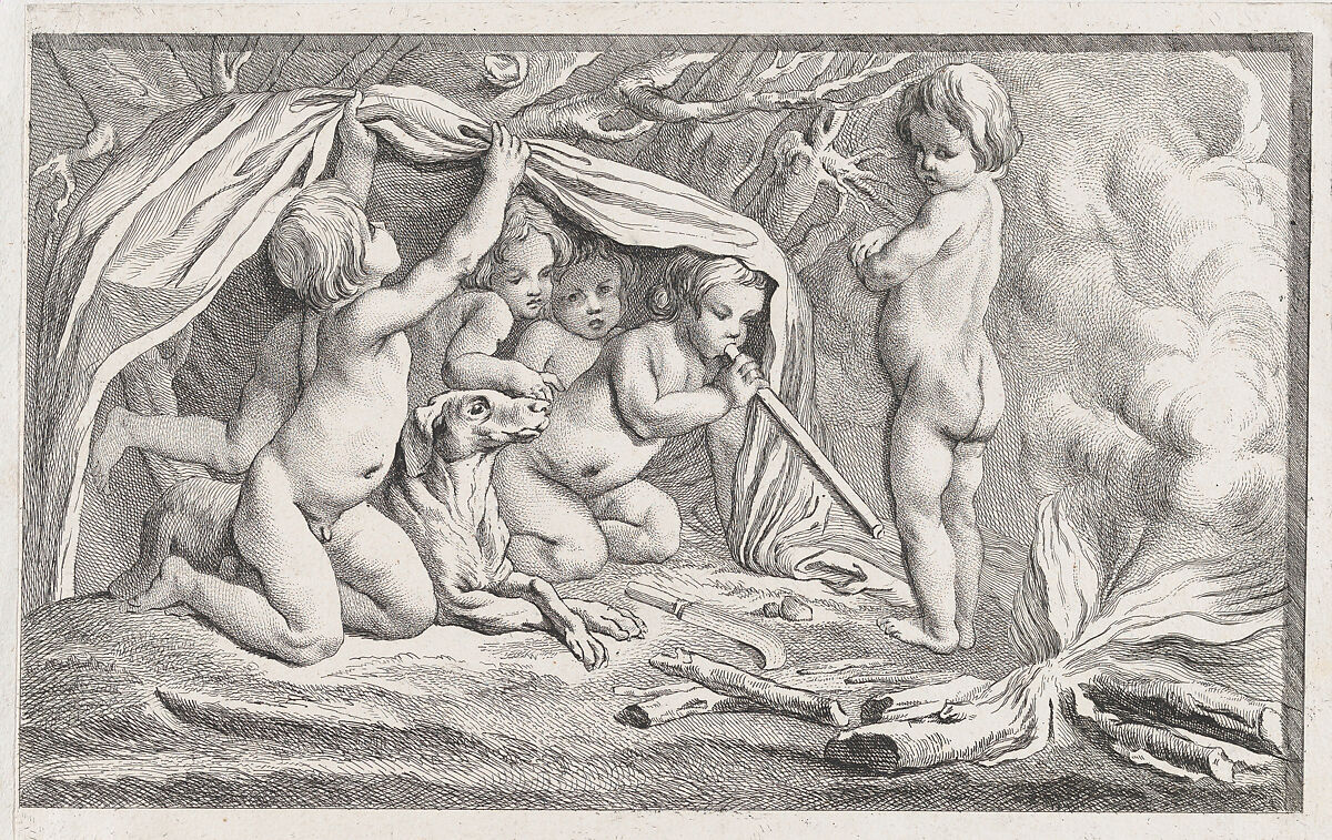 - Title: Nude children and a dog warming themselves by a fire; an allegory of Winter, after a bas-relief on the Fontaine des Quatre-Saisons (Paris)