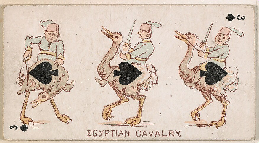 - Title: Three of Spades, Egyptian Cavalry, from Harlequin Cards, 2nd Series (N220) issued by Kinney Bros.