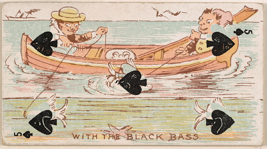- Title: Five of Spades, With the Black Bass, from Harlequin Cards, 2nd Series (N220) issued by Kinney Bros.