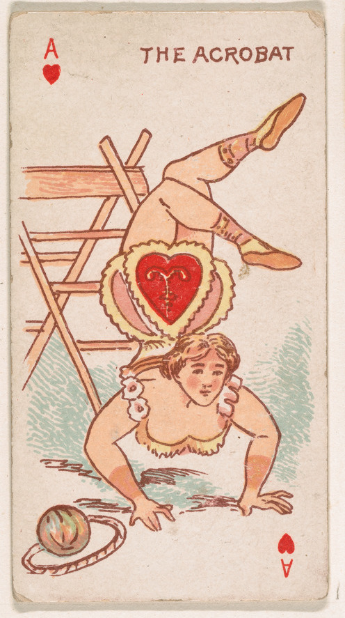 Ace of Hearts, The Acrobat, The German, from Harlequin Cards, 2nd Series (N220) issued by Kinney Bros.