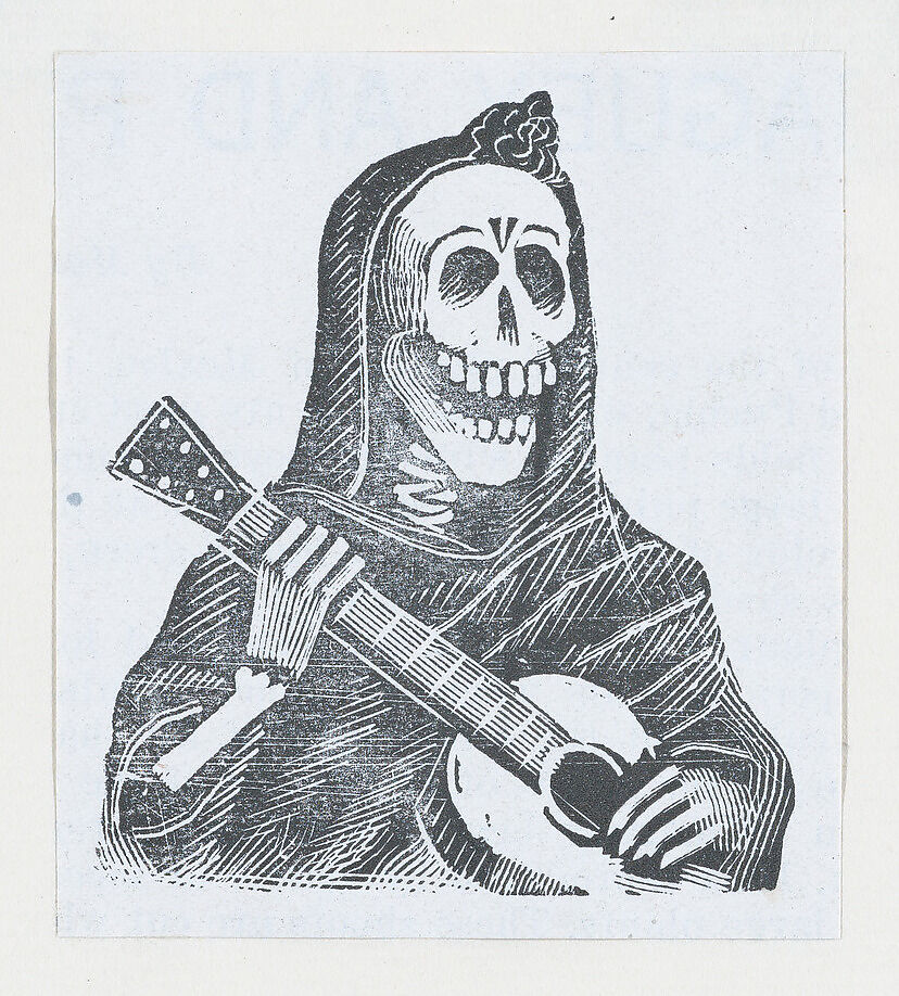 - Title:Female skeleton playing the guitar (vignette for the feast of the dead)