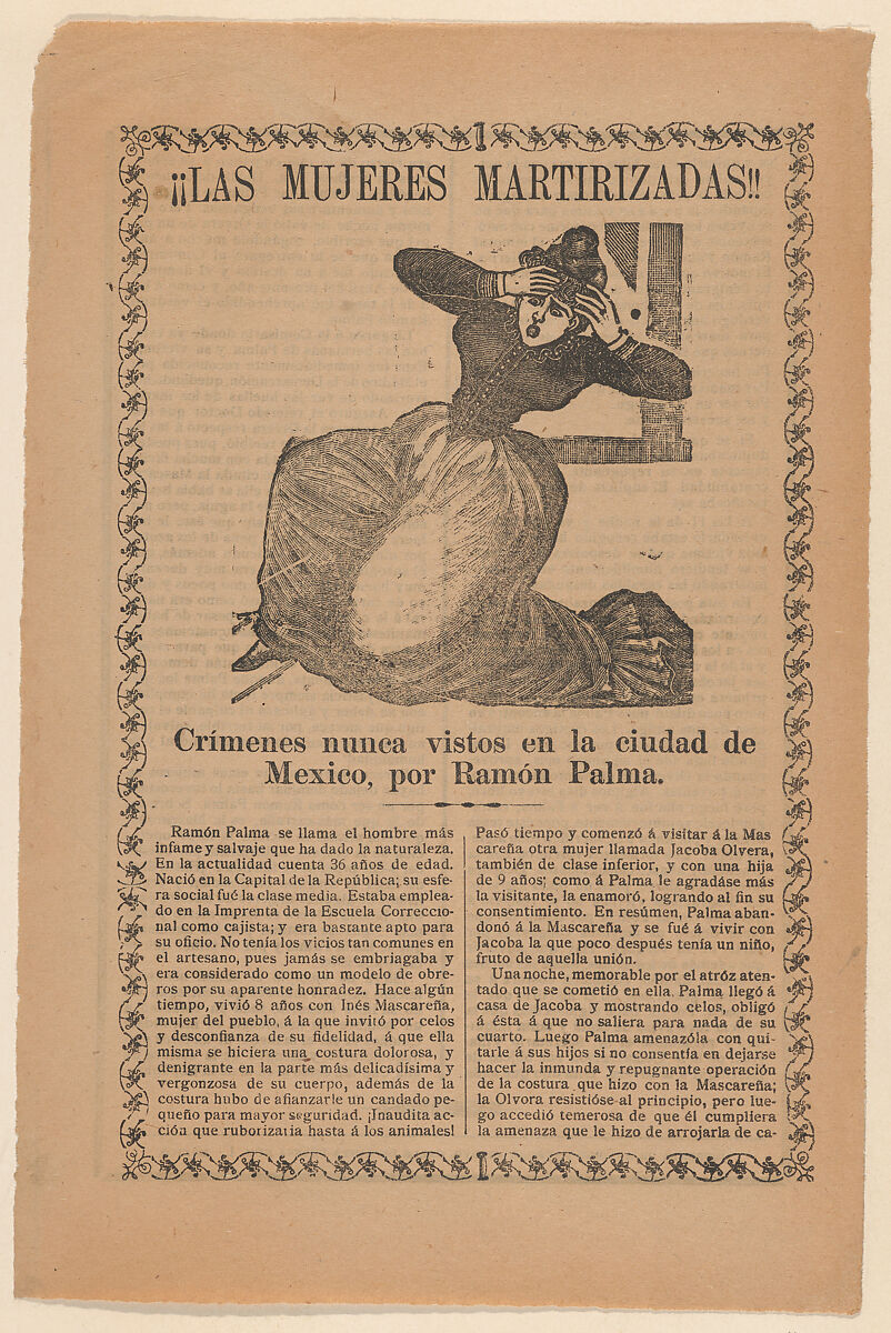 - Title: Broadsheet relating to the sensational story of a jealous man named Ramón Palma, who required extreme measures from his female lovers to demonstrate their loyalty to him