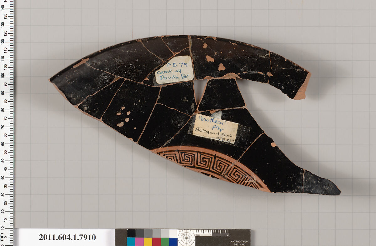 - Title:Terracotta fragment of a kylix (drinking cup)