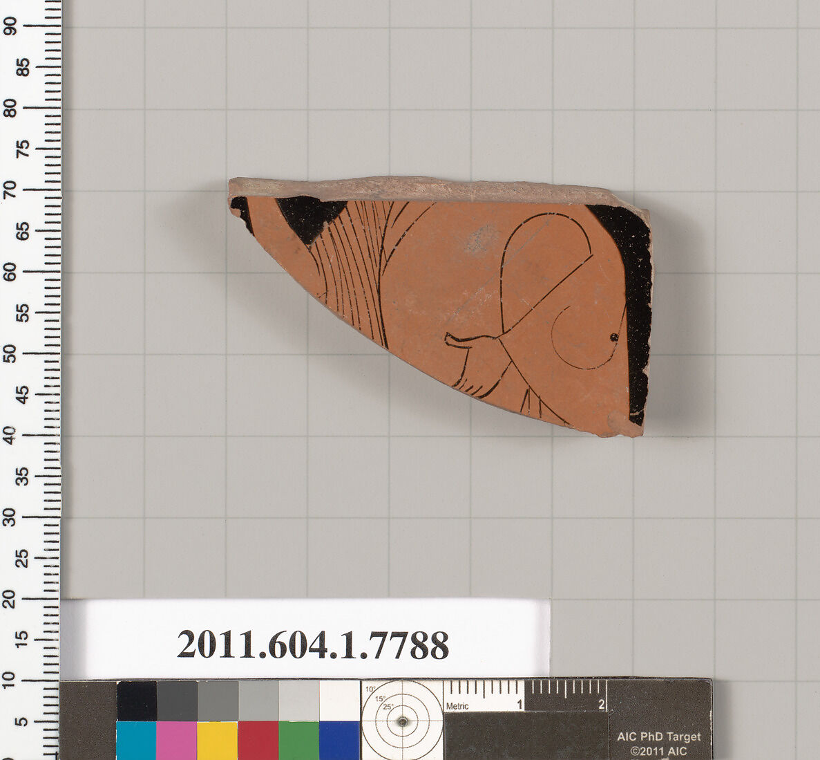 - Title:Terracotta fragment of a kylix (drinking cup)
