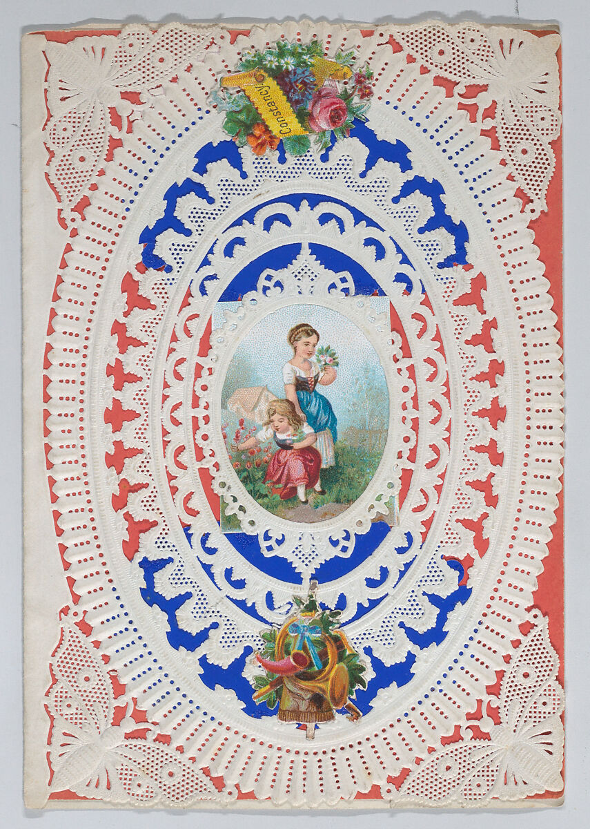 - Medium: Open-work, cameo embossed paper, chromolithographed die-cut scraps, colored paper