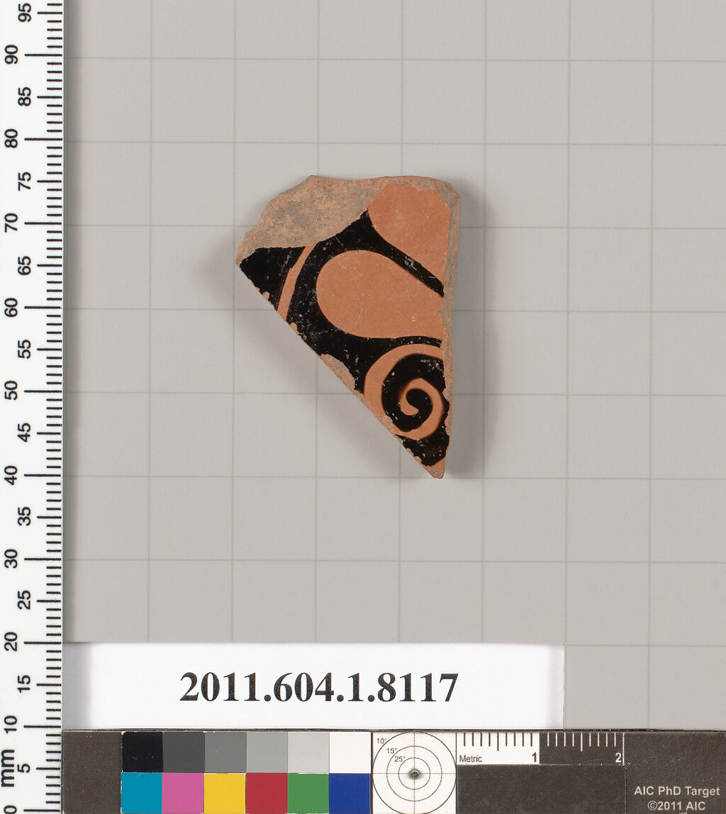 - Title:Terracotta fragment of a kylix (drinking cup)
