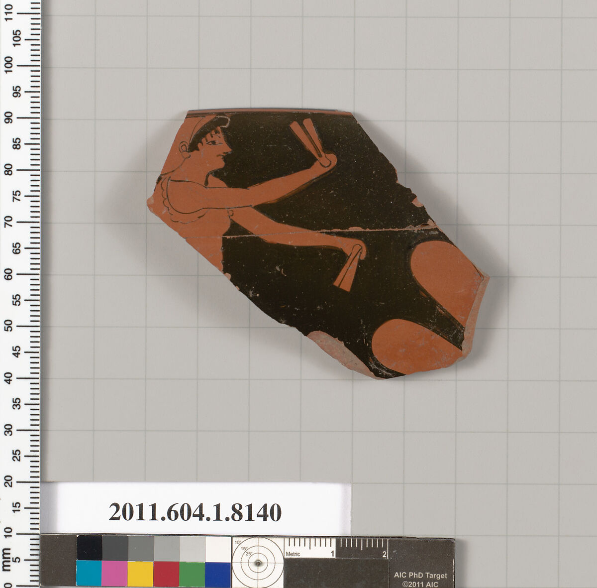 - Title: Terracotta rim fragment of a kylix (drinking cup)