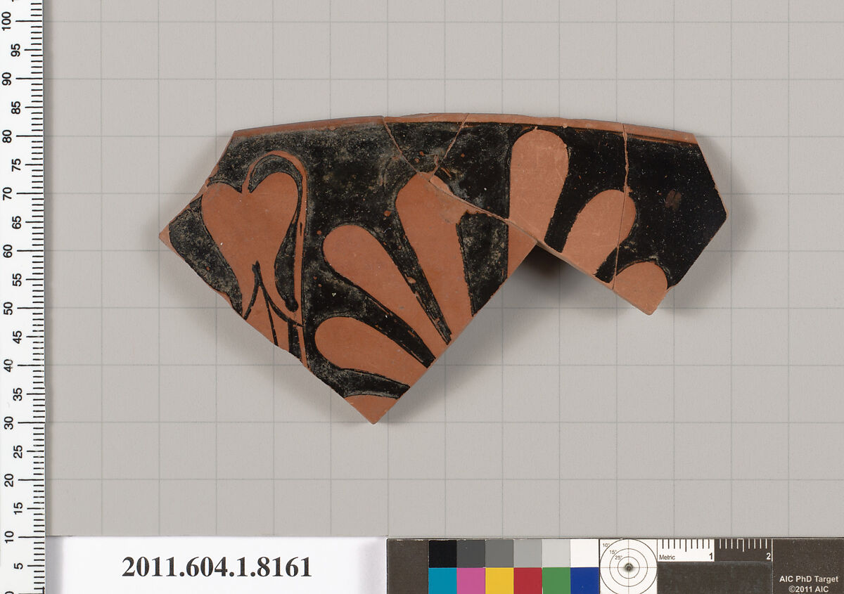 - Title:Terracotta rim fragment of a kylix (drinking cup)