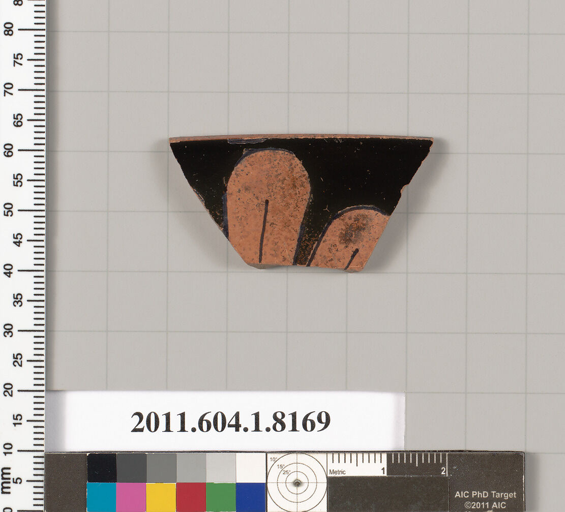 - Title:Terracotta rim fragment of a kylix (drinking cup)