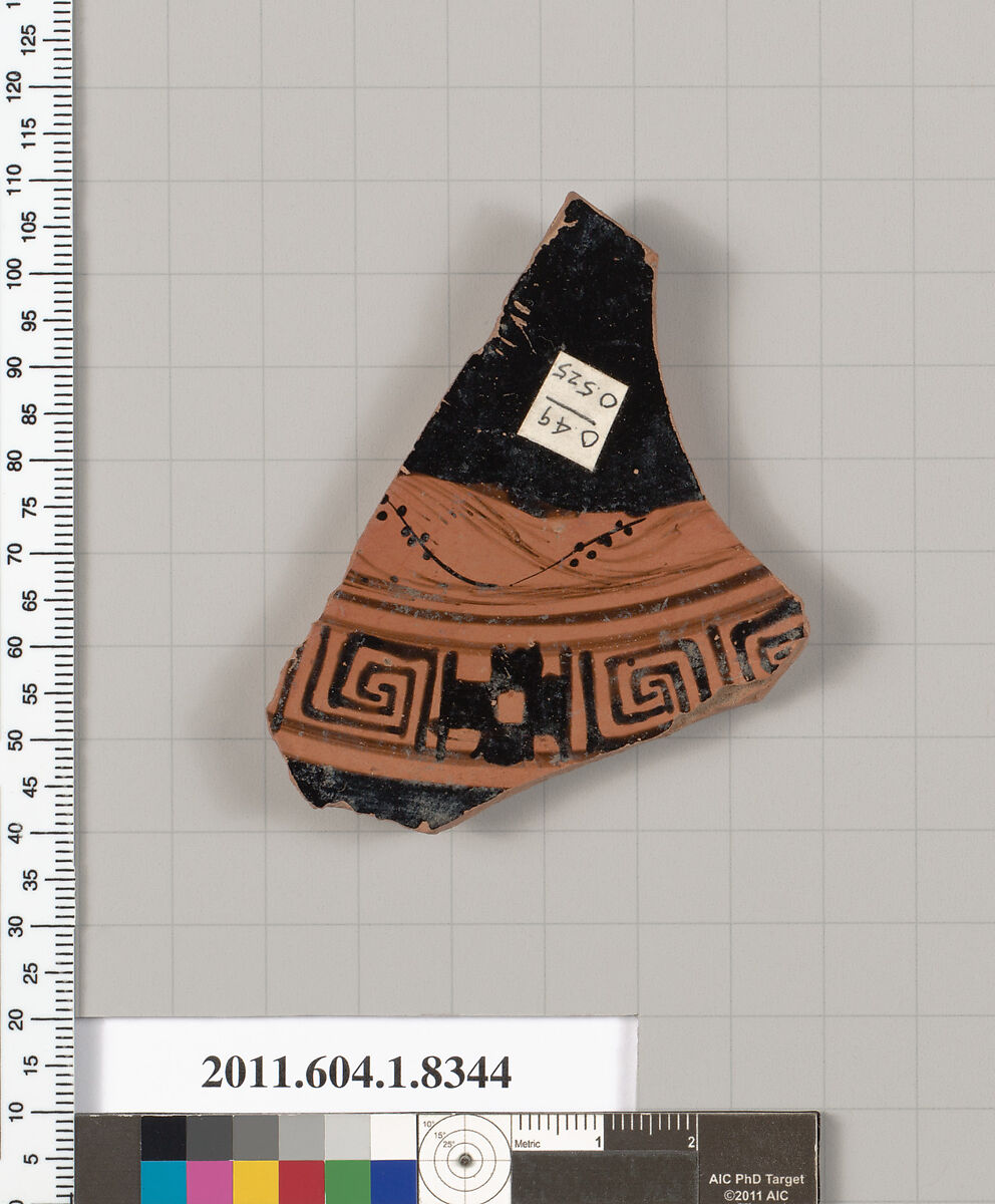 - Title:Terracotta fragment of a kylix (drinking cup)