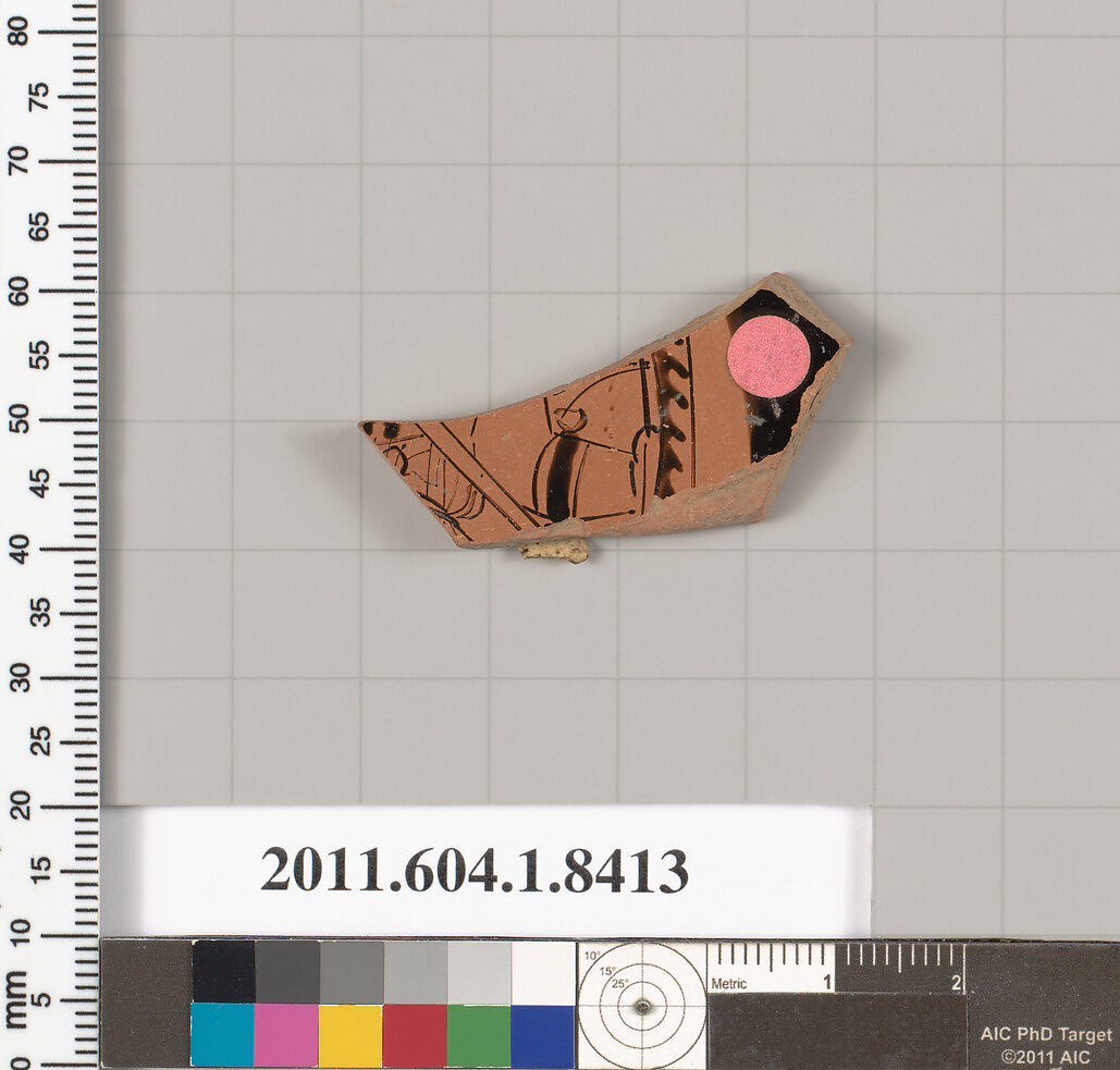 - Title:Terracotta fragment of a kylix (drinking cup)