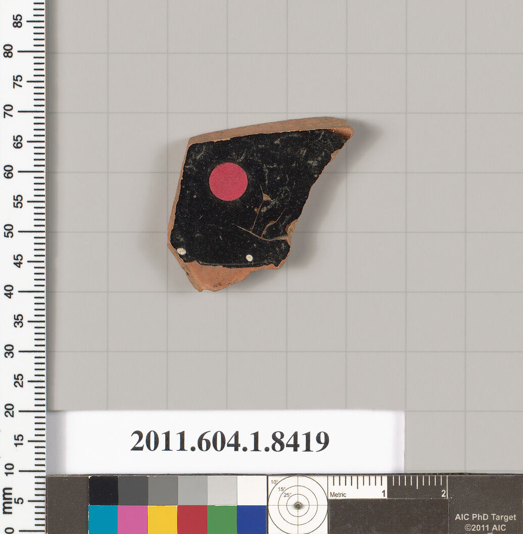 - Title:Terracotta fragment of a kylix (drinking cup)