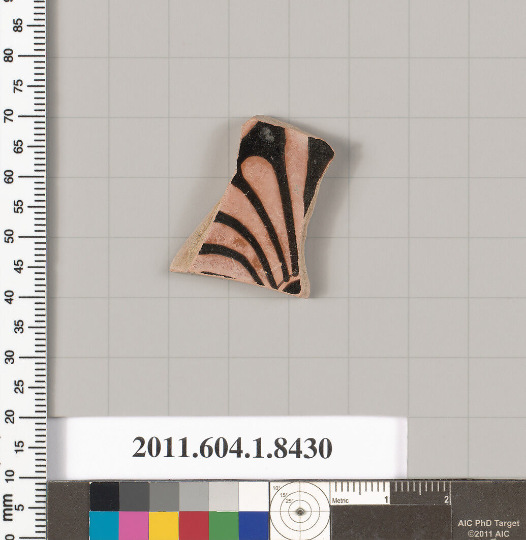 - Title:Terracotta fragment of a kylix (drinking cup)