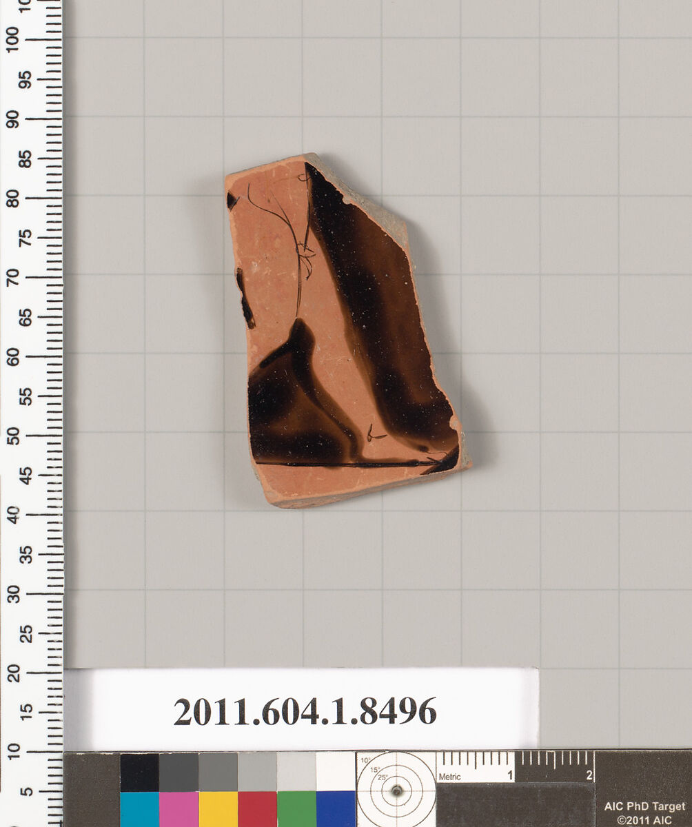 - Title:Terracotta fragment of a stemless kylix (drinking cup)