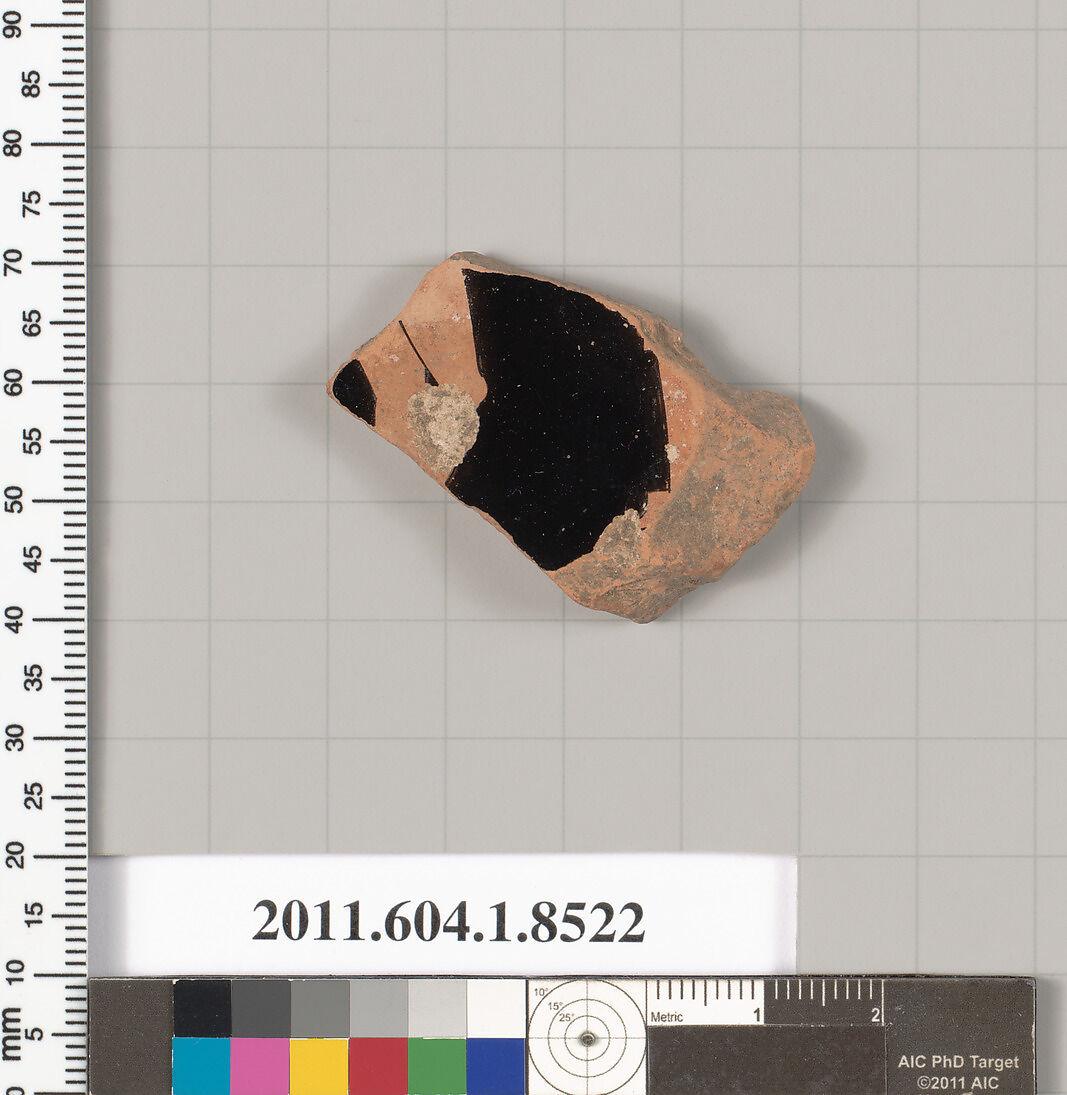 - Title: Terracotta fragment of a stemless kylix (drinking cup)