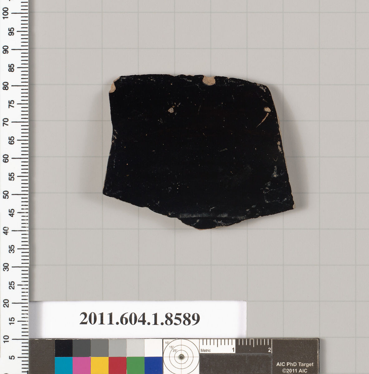 - Title:Terracotta fragment of a stemless kylix (drinking cup)