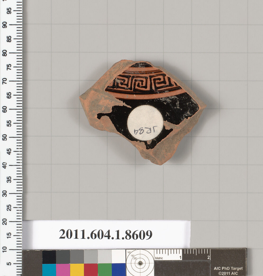 - Title:Terracotta fragment of a stemless kylix (drinking cup)