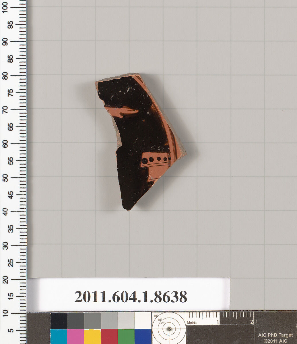 - Title:Terracotta fragment of a stemless kylix (drinking cup)