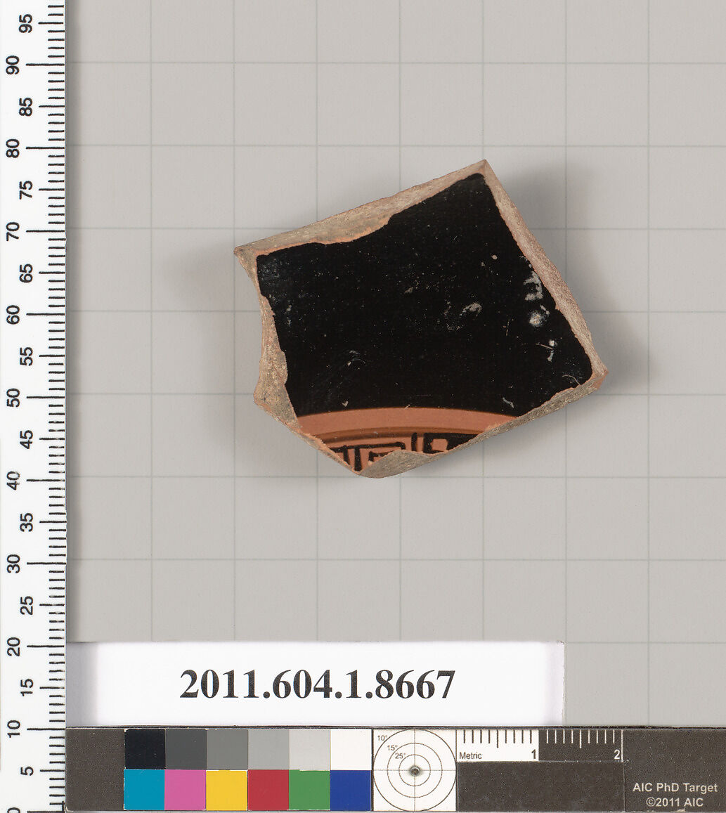 - Title:Terracotta fragment of a stemless kylix (drinking cup)