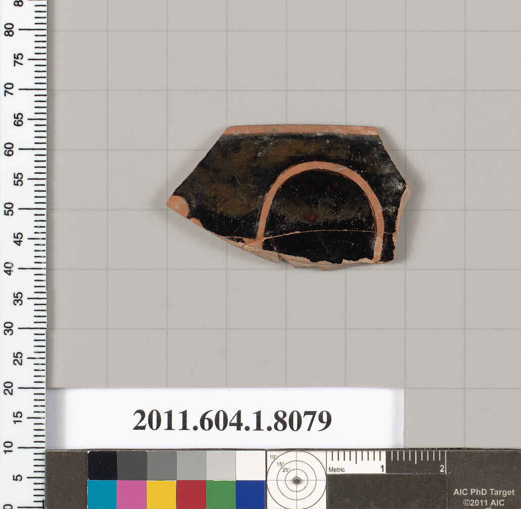 - Title:Terracotta rim fragment of a kylix (drinking cup)